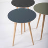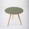 Versatile low table, with solid Oak legs, and tops in laminated Oak and Desktop Linoleum. Linoleum is an all-natural surface material, known for its elegance and durability. It has a smooth, matte finish that is warm to the touch, is waterproof, absorbs sound, is antistatic, hypoallergenic and antibacterial. Its surfaces are not sensitive to marks or fingerprints. Once discarded, linoleum is biodegradable.