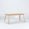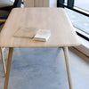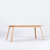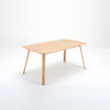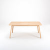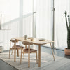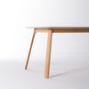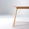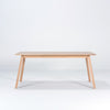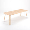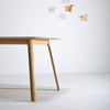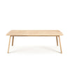 Rounded edges, elliptical shapes, and finely sanded contours combine with the gently tapered edges of a thin table top to produce an overall effect which is modern, fluid, and classic. Entirely in solid Oak.