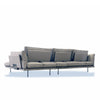 Construction: metal structure and wooden frame supported by elastic belts. Seat cushions are filled with expanded polyurethane foam with three different densities, covered with siliconized microfiber. The back cushions are filled with an expanded polyurethane foam insert, covered with siliconized microfiber. Legs in black chromed metal.
