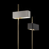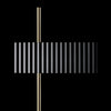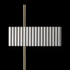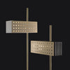 Crisp minimalist floor lamp with cleverly designed lamp shade which features vertical striations on one side, and perforations on the other. The cubic perforations allow the lamp to project a soft repeating pattern onto the wall, adding texture and drama to your living space. Lampshades are two toned, with the striation side in a contrasting finish in glossy black or white, while the perforated side matches the metal finish of the stem and base. Made in Italy.