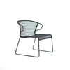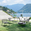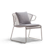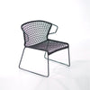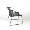 Lounging armchair in Anthracite or White, with metal frame in embossed lacquer, and webbing in matt PVC hand woven rope. Use indoors for your most punishing applications, or use outdoors to relax in natural air conditioned splendor.