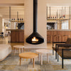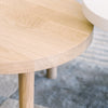 Set of two round coffee tables made of solid wood from European Oak with 42 mm/1.65” slabs. Legs made of solid wood profile from European oaks joined with flush mount steel brackets, finished with height adjustable levellers. Available in solid European Oak, finished in low VOC water-based matte varnish with UV protection. Available as stocked. Made in Spain.