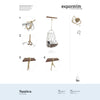 Made of high resistance Aluminum tube finished in textured epoxy paint in seven colors. Includes braided polyester suspension rope, and three horizontal back cushions 50 cm x 32 cm. Seat cushion in expanded polyurethane, and back cushions in polyester fibre, both with removable waterproof and fireproof cover made of polyester with special anti-mould and anti-bacterial treatment. Also available in version with self supporting structure in Aluminum tube. Made in Spain.